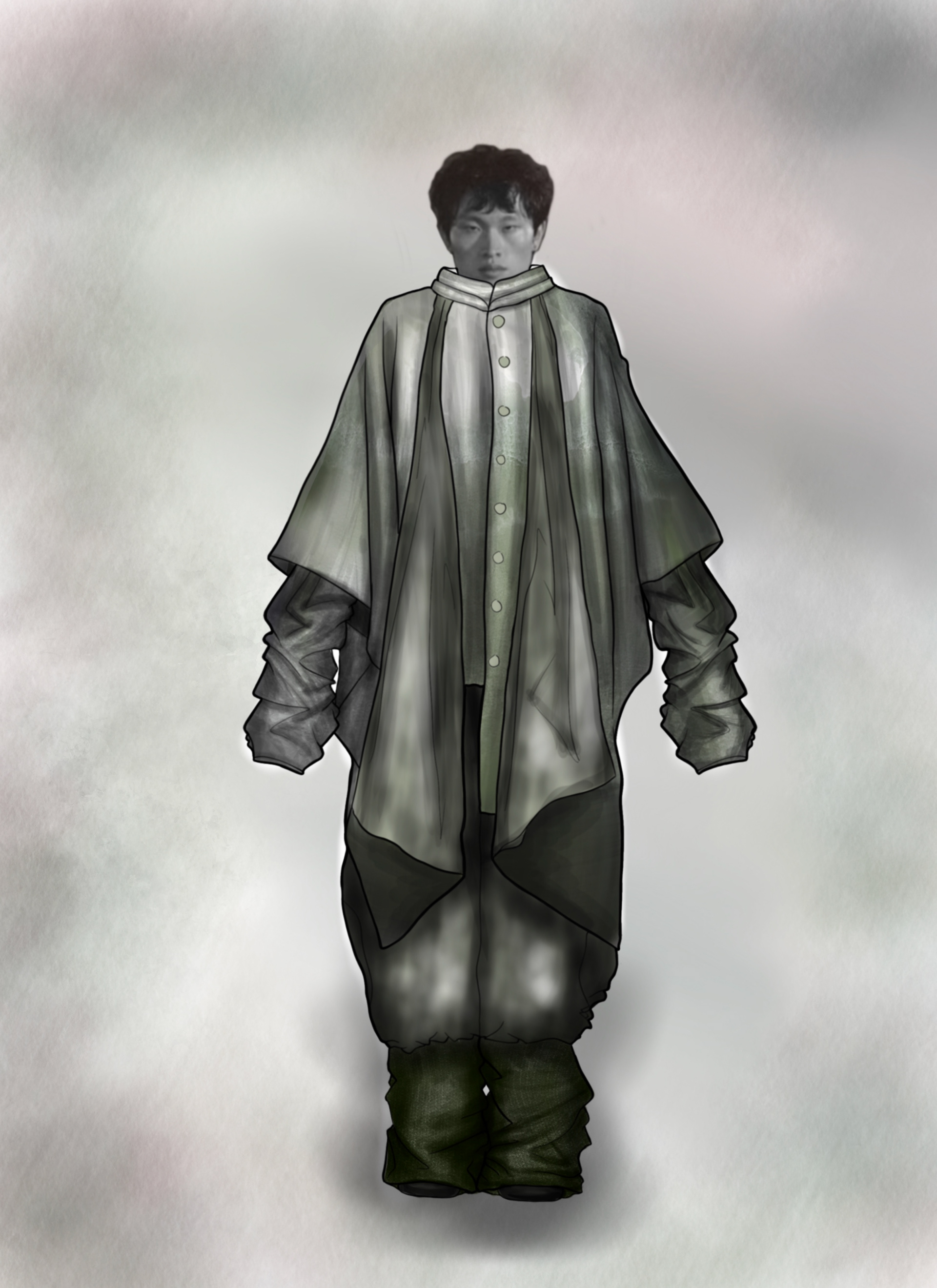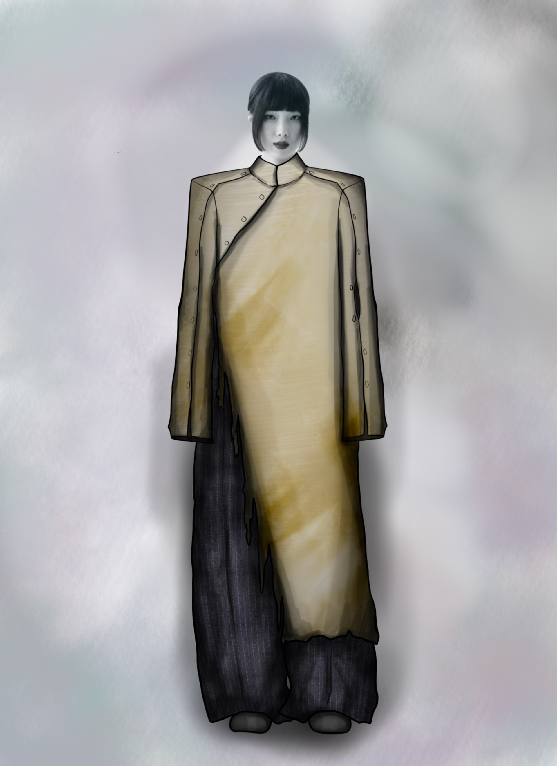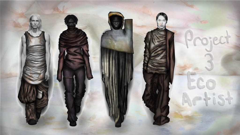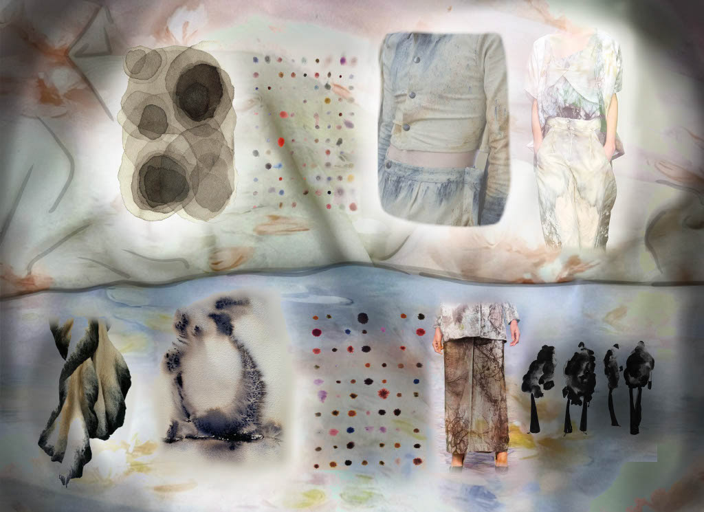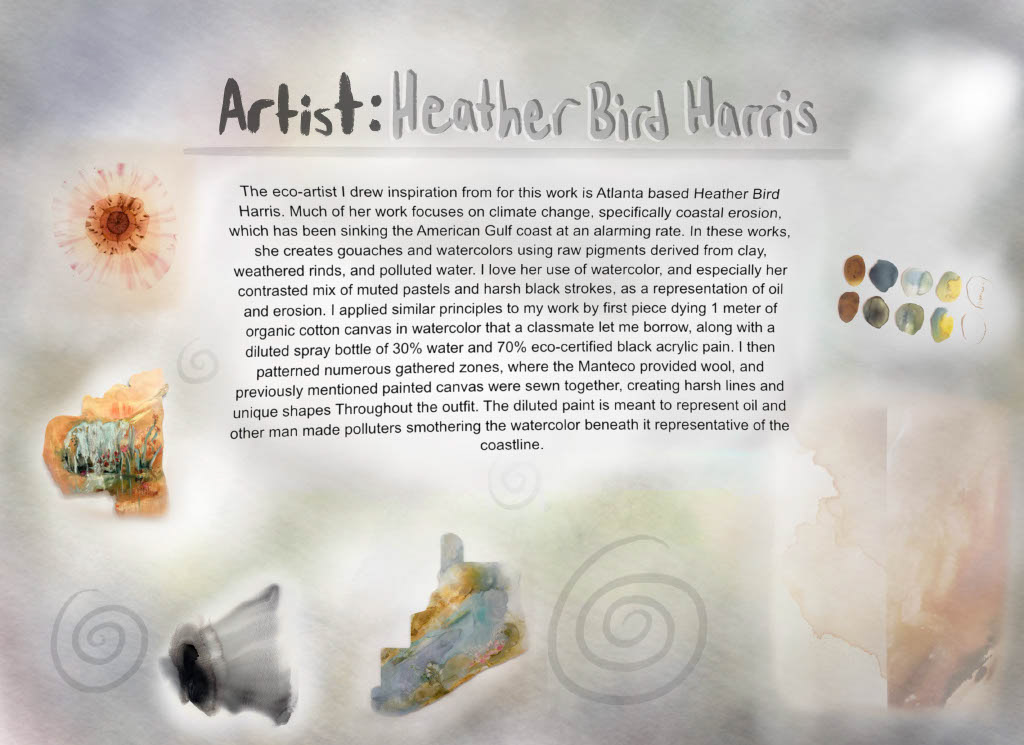 "The Language of the Eco-Artist" is a capsule collection centered around the study and integration of principles used by the American artist Heather Bird Harris. Fully conceived in Florence, Italy, students were provided three meters of wool by Manteco, a company known for circular luxury textiles. I paired this wool with a 10oz canvas I piece dyed with gouache, to emulate the raw pigments used in Heather Bird's works.