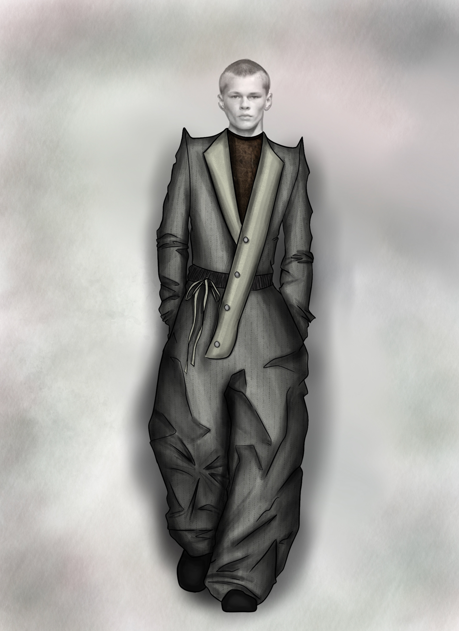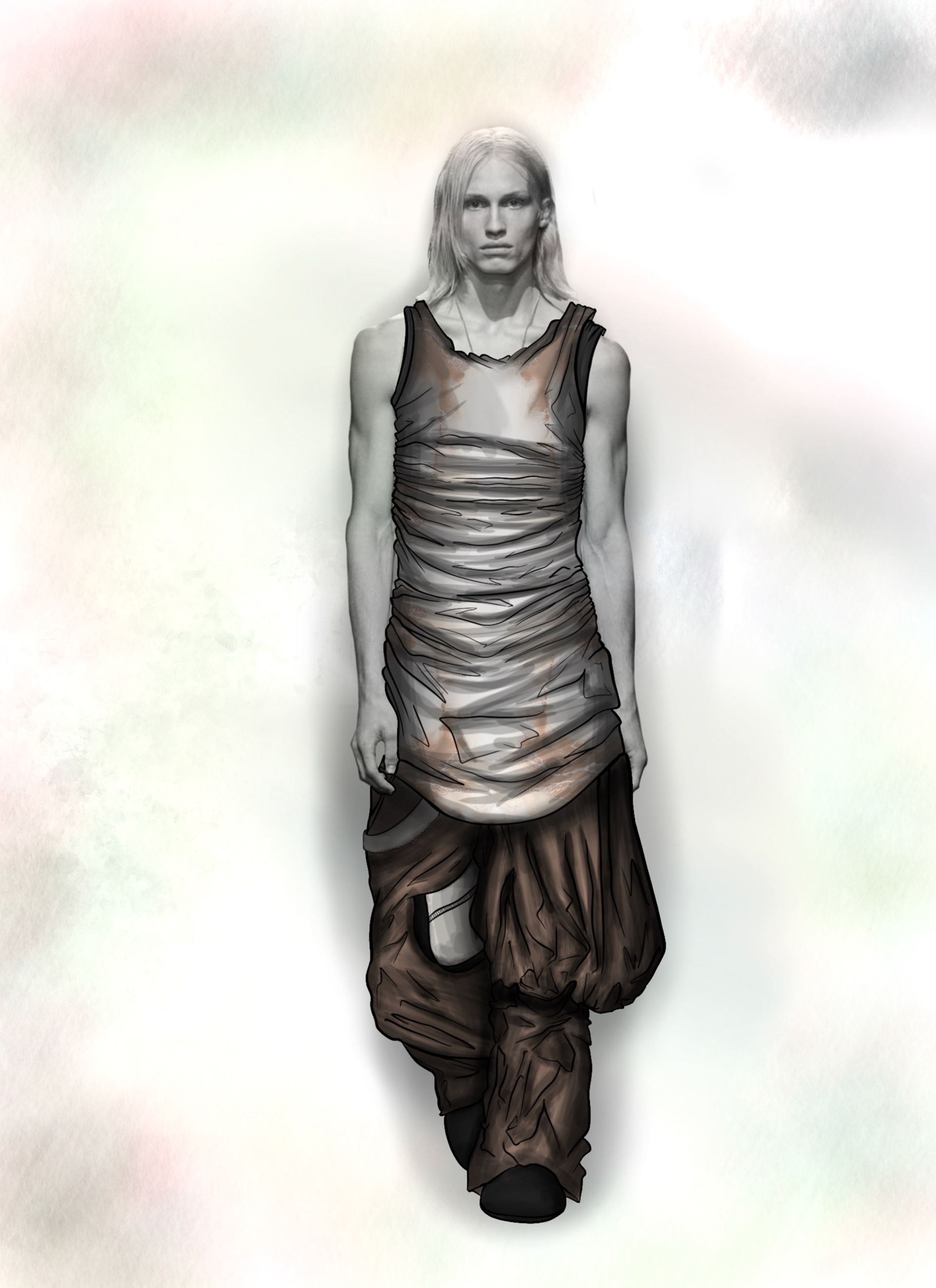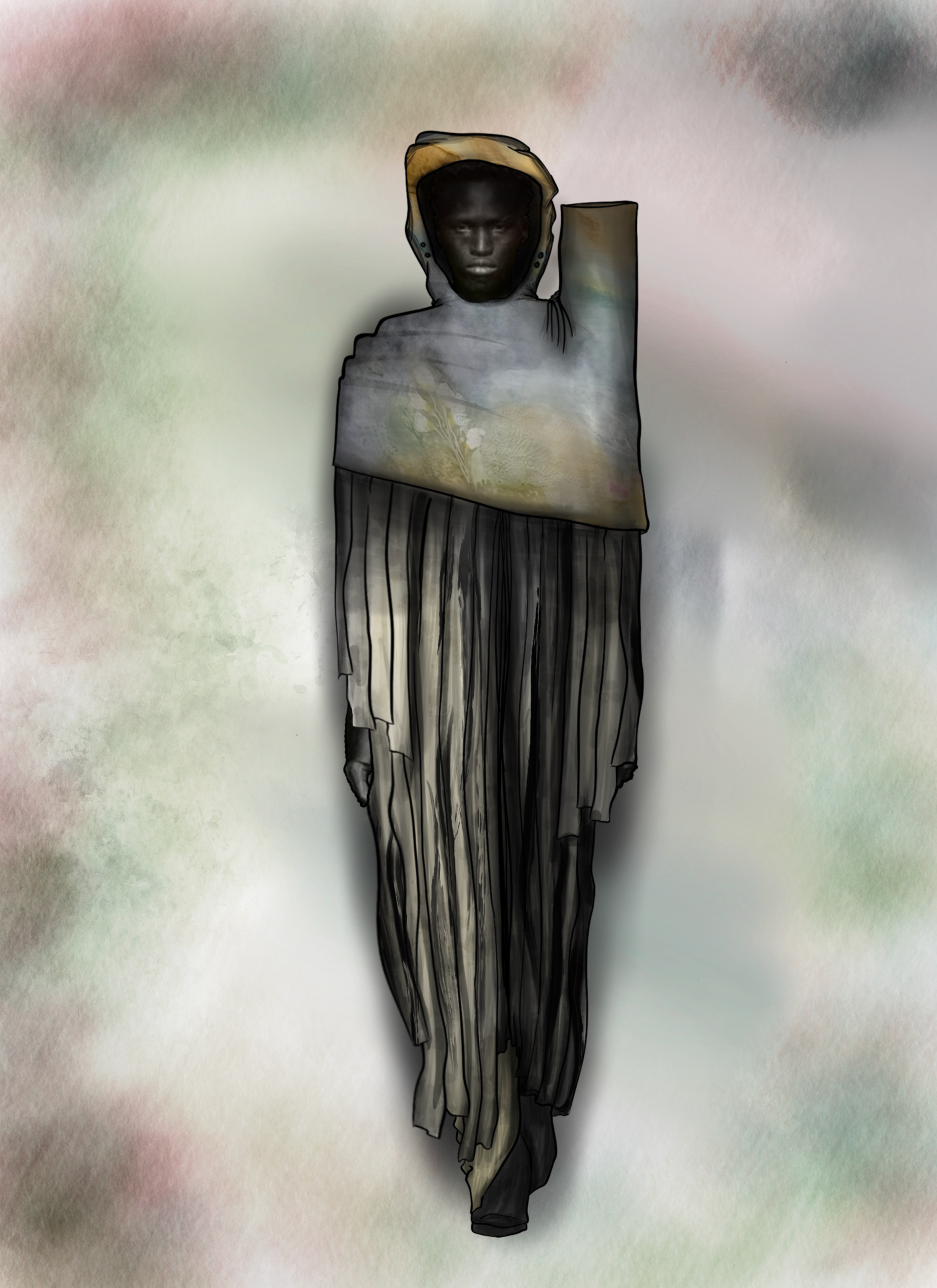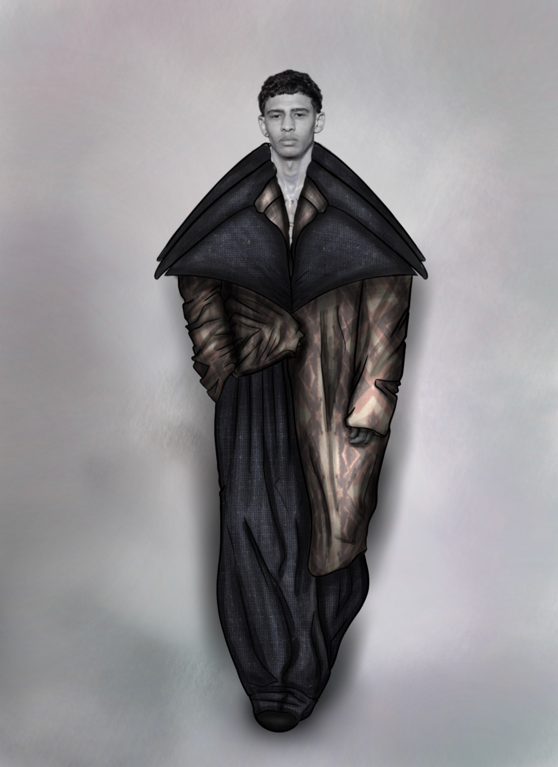 "The Language of the Eco-Artist" is a capsule collection centered around the study and integration of principles used by the American artist Heather Bird Harris. Fully conceived in Florence, Italy, students were provided three meters of wool by Manteco, a company known for circular luxury textiles. I paired this wool with a 10oz canvas I piece dyed with gouache, to emulate the raw pigments used in Heather Bird's works.